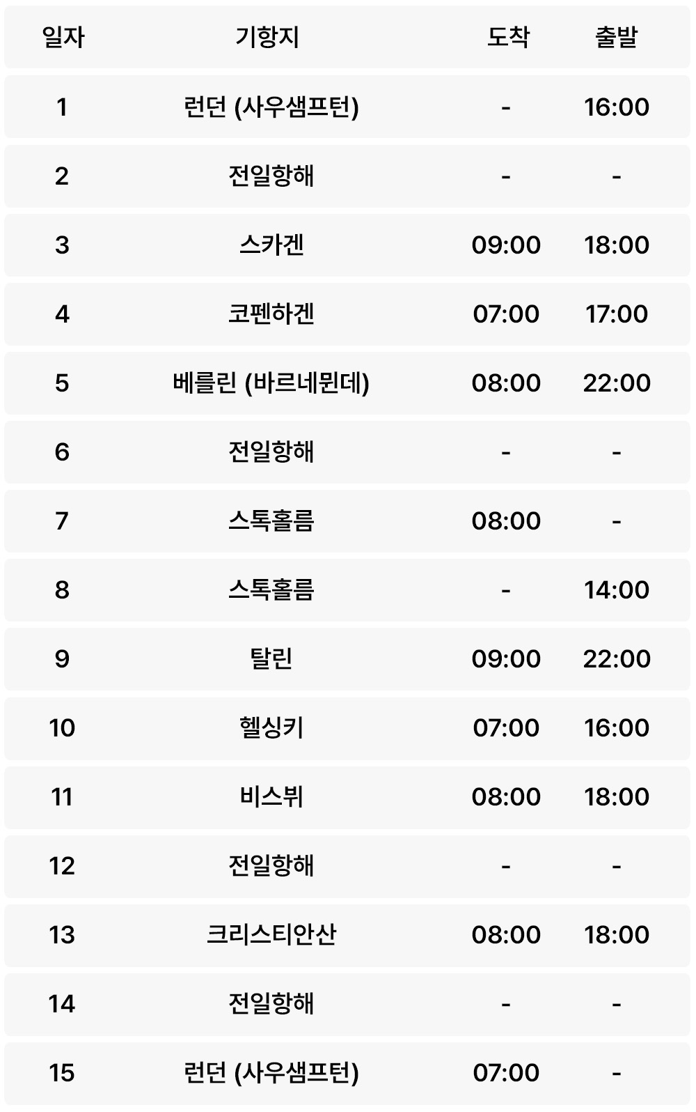 ✓ 상기 일정은 선사 사정 또는 현지 날씨(천재지변)에 따라 사전 통보없이 변경될 수 있습니다.