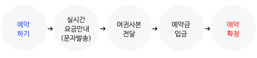 ● 예약확정 : 예약금 입금이 확인되면 예약이 확정됩니다. 잔금 안내일에 잔금 입금을 진행합니다.