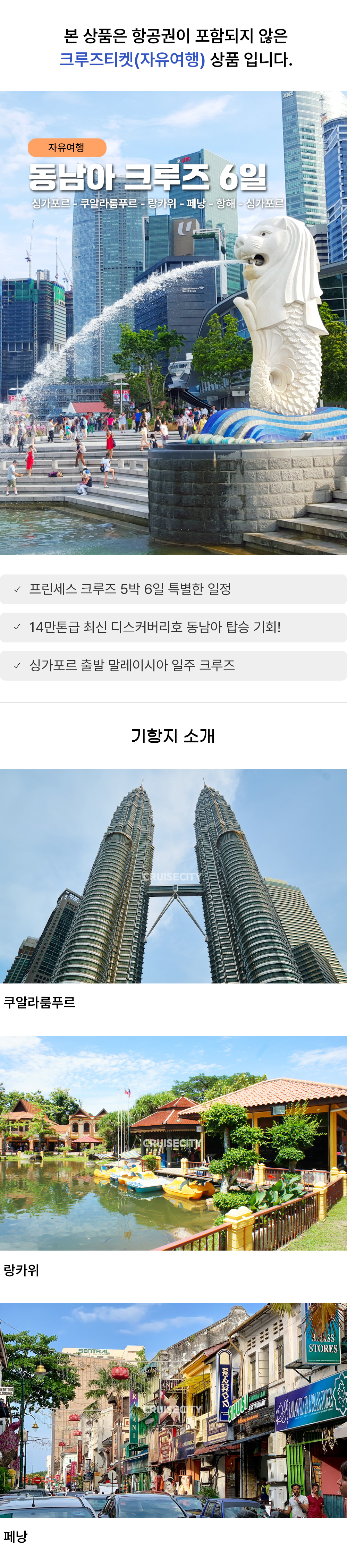 ✓ 크루즈 출발시간 최소 3시간 전 항구에 도착하여 승선수속을 진행해야 하며, 귀국 항공편은 크루즈 도착 기준 약 5~6시간 이후로 예약해 주세요.