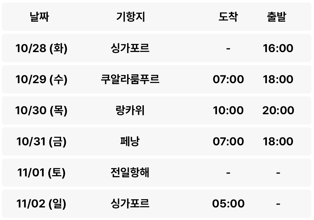 ✓ 상기 일정은 선사 사정 또는 현지 날씨(천재지변)에 따라 사전 통보없이 변경될 수 있습니다.