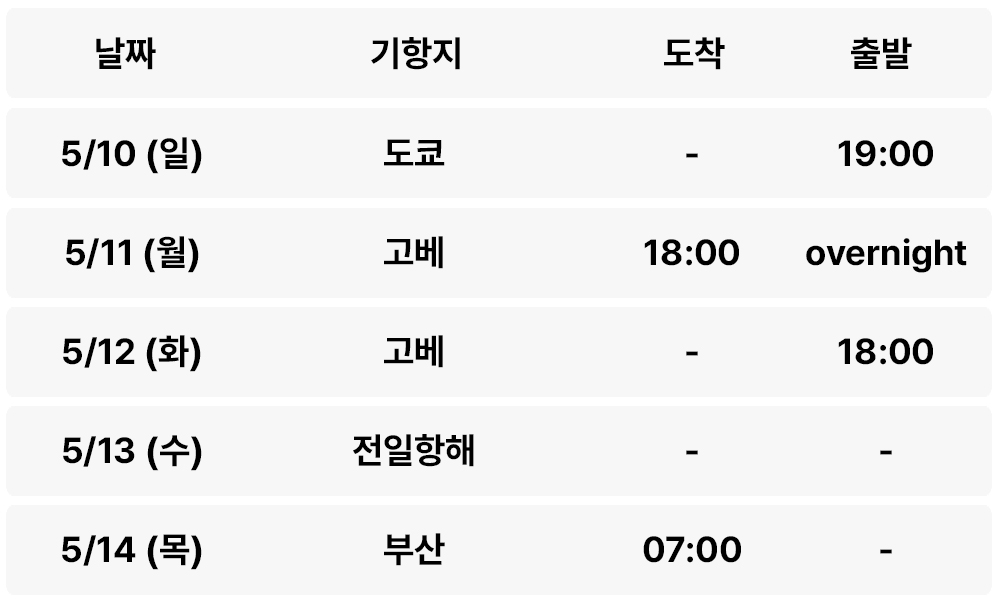 - 상기 일정은 선사 사정 또는 현지 날씨(천재지변)에 따라 사전 통보없이 변경될 수 있습니다.