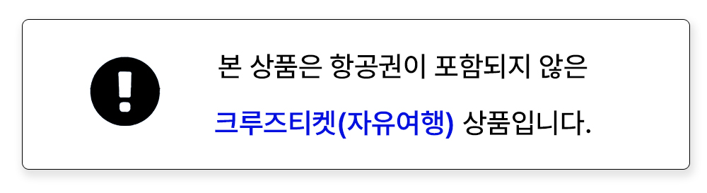 - 본 상품은 크루즈티켓 자유여행 상품으로 한국-도쿄 편도항공권을 먼저 구매 후 예약하시길 추천 드립니다.
