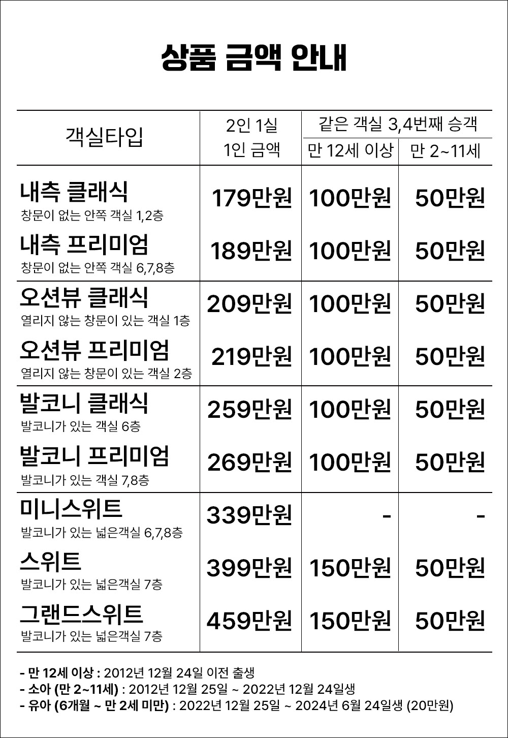 ✓ 소아, 유아 요금은 성인 2명과 함께 같은 객실을 이용하는 조건입니다.