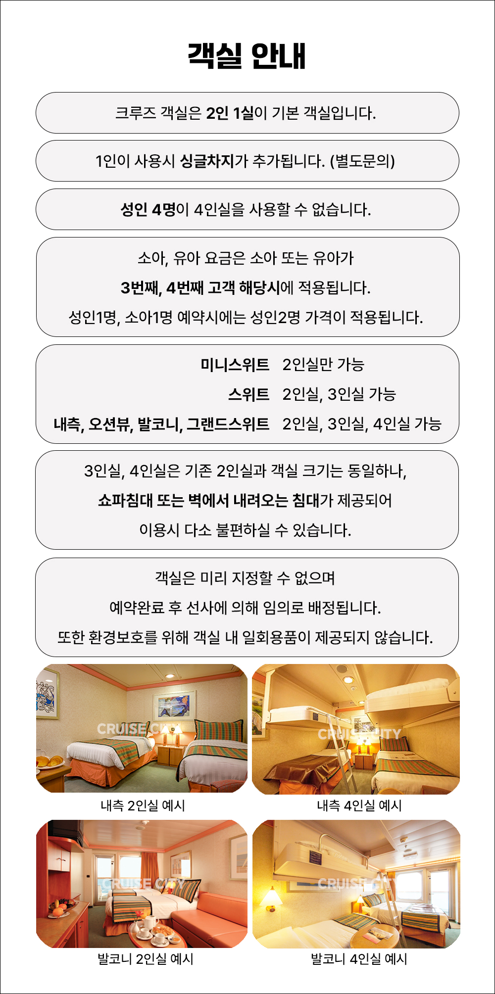 ✓ 객실은 지정할 수 없으며 예약완료 후 선사에 의해 임의 배정됩니다.