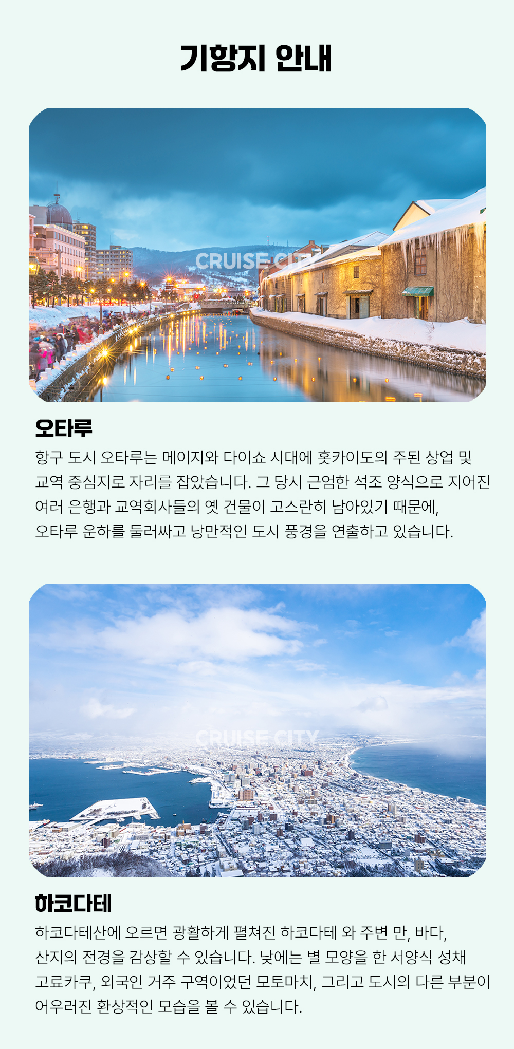 ✓ 기항지 선택관광은 2곳이 세트로 구성되어 있어 2곳 다 신청하셔야 예약이 가능합니다.